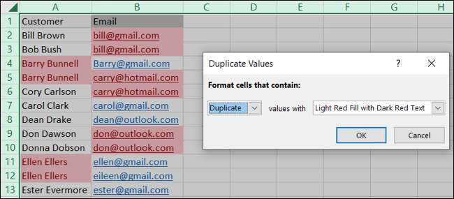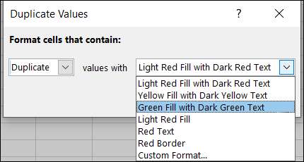 Όταν εμφανίζεται το παράθυρο διπλής τιμών, θα πρέπει να βλέπετε αμέσως τα αντίγραφα σας που έχουν επισημανθεί με την προεπιλεγμένη μορφή μορφοποίησης. Ωστόσο, μπορείτε να το αλλάξετε αν θέλετε.