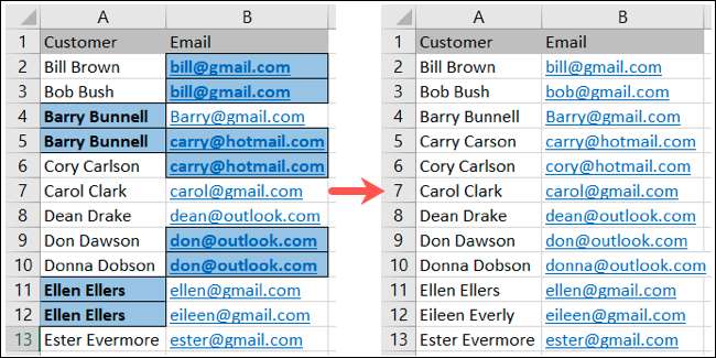 Μόλις έχετε υπογραμμίσει τα διπλά δεδομένα σας χρησιμοποιώντας τη μορφοποίηση υπό όρους, μπορείτε να κάνετε τις διορθώσεις ή τις ρυθμίσεις που χρειάζεστε. Και μόλις το κάνετε, η μορφοποίηση θα εξαφανιστεί εφόσον δεν έχει διπλασιάσει αλλού στην επιλογή των κυττάρων σας.