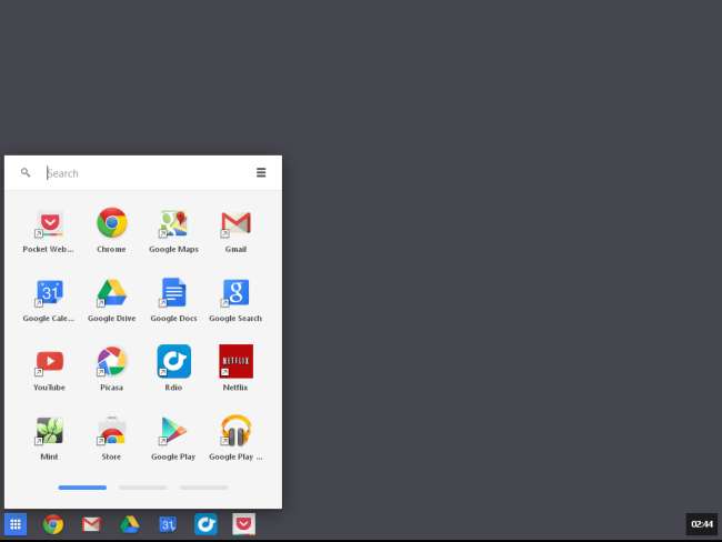 Η επιφάνεια εργασίας Chrome θα εμφανιστεί τώρα, καταλαμβάνοντας ολόκληρη την οθόνη όπως οποιαδήποτε άλλη εφαρμογή Windows 8. Για να ξεκινήσετε εφαρμογές - ή να ανοίξετε νέα παράθυρα του προγράμματος περιήγησης Chrome - χρησιμοποιήστε την εφαρμογή εκκίνησης στην κάτω αριστερή γωνία της οθόνης σας. Είναι ακριβώς όπως το Εκκίνηση εφαρμογών Chrome που μπορείτε να εγκαταστήσετε στην επιφάνεια εργασίας των Windows για να ενσωματώσετε εφαρμογές Chrome στη γραμμή εργασιών των Windows.