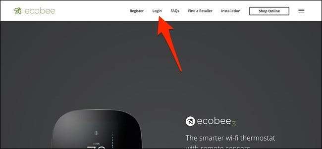 Για να ξεκινήσετε, μεταβείτε στον ιστότοπο της Ecobee σε οποιονδήποτε υπολογιστή και κάντε κλικ στην επιλογή "Σύνδεση" στην κορυφή. Δυστυχώς, ο μόνος τρόπος για να δείτε το ιστορικό χρήσης και τις αναφορές του Ecobee είναι μέσω της διεπαφής ιστού.