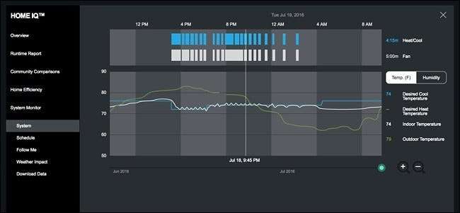Αυτό είναι πιθανό να κοιτάξετε περισσότερο. Το System Monitor δείχνει πότε το σύστημα HVAC είναι ενεργοποιημένο και απενεργοποιημένο και δείχνει επίσης τη ρυθμισμένη θερμοκρασία, την πραγματική θερμοκρασία στο σπίτι και την εξωτερική θερμοκρασία για να τα συγκρίνετε όλα μεταξύ τους. Για το σπίτι μας, το HVAC έρχεται μόνο τα βράδια και ο κλιματισμός αυξάνεται λίγο μόλις κοιμηθούμε, ώστε να είναι ωραίο και δροσερό στο υπνοδωμάτιο μας.