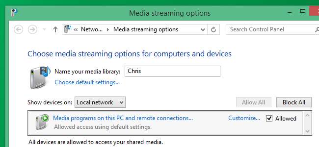 Το κανάλι Roku Media Player μπορεί επίσης να συνδεθεί με διακομιστή DLNA στο τοπικό σας δίκτυο και να μεταδώσει ασύρματα βίντεο και μουσική από αυτά. Εάν χρησιμοποιείτε Windows, μπορείτε χρησιμοποιήστε τον πίνακα ελέγχου "Επιλογές ροής πολυμέσων" για να ρυθμίσετε τα Windows ώστε να λειτουργούν ως διακομιστής DLNA. Στη συνέχεια, θα πρέπει να μπορείτε να περιηγηθείτε στα κοινόχρηστα αρχεία πολυμέσων στο Roku και να τα αναπαράγετε μέσω του δικτύου - εφόσον ο υπολογιστής σας παραμένει ενεργοποιημένος.
