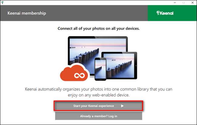 Αφού εκτελέσετε το εγκατεστημένο λογισμικό, κάντε κλικ στο "Ξεκινήστε την εμπειρία σας Keenai", όπως φαίνεται παρακάτω.