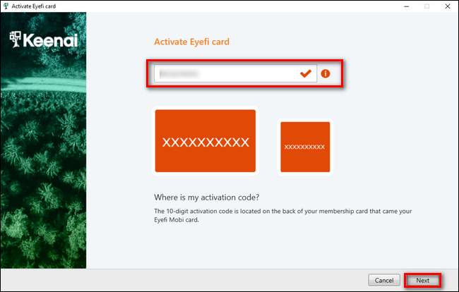 Τώρα, κάντε κλικ στο "Ξεκινήστε την ενεργοποίηση της κάρτας σας" και αρπάξτε την κάρτα εγγραφής μεγέθους πιστωτικής κάρτας που συσκευάστηκε με την κάρτα Eye-Fi SD.