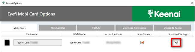 Στο μενού επιλογών (το οποίο θα προεπιλεγεί στις ρυθμίσεις για την κάρτα Eye-Fi εάν η κάρτα έχει εισαχθεί στον υπολογιστή σας), κάντε κλικ στο βέλος για να αναπτύξετε τις επιλογές για προχωρημένους.