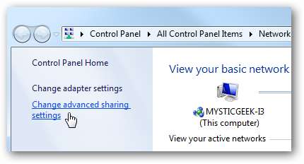 Στη συνέχεια, κάντε κλικ στο Αλλαγή σύνθετων ρυθμίσεων κοινής χρήσης υπερσύνδεσμος.