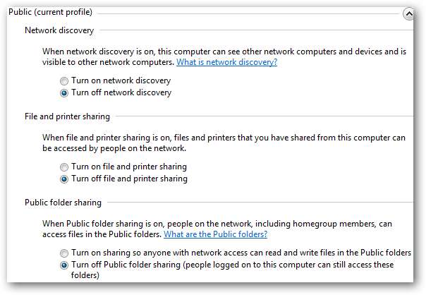 Αυτό θα απενεργοποιήσει αυτόματα την κοινή χρήση αρχείων, την ανακάλυψη δικτύου και την κοινή χρήση δημόσιων φακέλων.