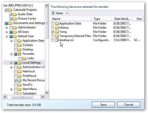 Αφού σαρώσετε τους λογαριασμούς χρηστών και τις ρυθμίσεις τους, σας παρουσιάζεται μια γενική λίστα όπου μπορείτε να επιλέξετε τι θα αποθηκεύσετε.