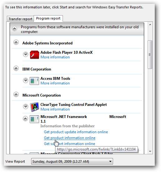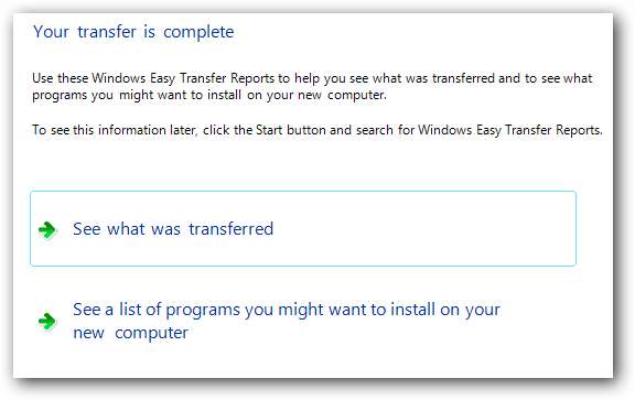 Όταν ολοκληρωθεί η μεταφορά, μπορείτε να δείτε μια αναφορά για το τι μεταφέρθηκε ή προτάσεις για πρόσθετα προγράμματα