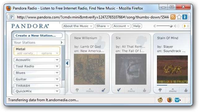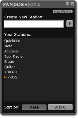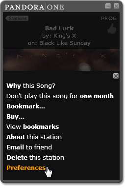 Κάντε κλικ στο εικονίδιο της πυραμίδας για να λάβετε επιπλέον μενού που είναι εξοικειωμένα με τους χρήστες της Pandora καθώς εμφανίζονται και στο πρόγραμμα αναπαραγωγής ιστού.