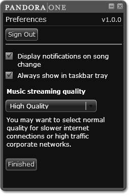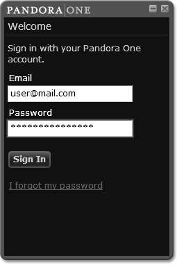 Η εφαρμογή επιτραπέζιου υπολογιστή έχει μια πολύ λεπτή, εύχρηστη διεπαφή. Το πρώτο πράγμα που πρέπει να κάνετε είναι να συνδεθείτε στον λογαριασμό σας στο Pandora.