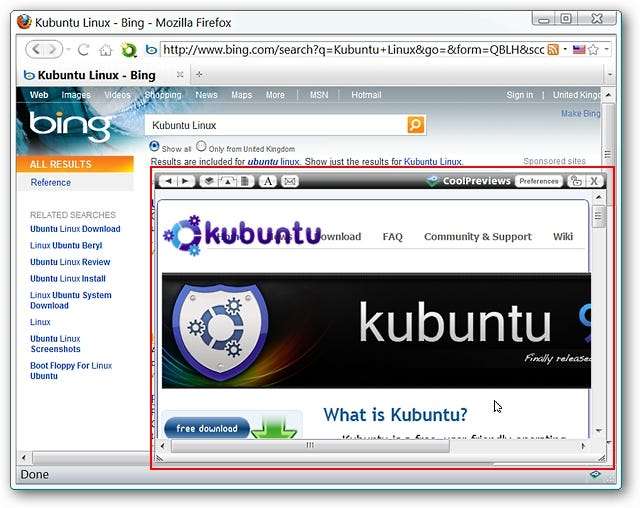 Μόλις εγκαταστήσετε την επέκταση και ξεκινήσετε την περιήγηση, παρακολουθήστε το μικρό "CoolPreviews Icon" δίπλα σε συνδέσμους όταν τοποθετείτε το δείκτη του ποντικιού πάνω από αυτά. Μετακινήστε το ποντίκι σας πάνω από το "CoolPreviews Icon" για να ανοίξετε το "Preview Window".