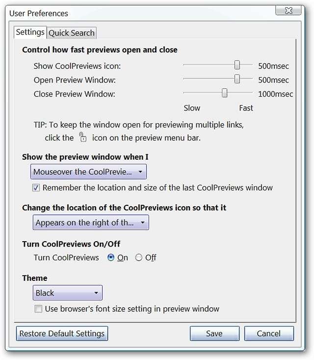 Επιλέξτε πώς θα θέλατε να λειτουργεί το CoolPreviews όταν χρησιμοποιείται.