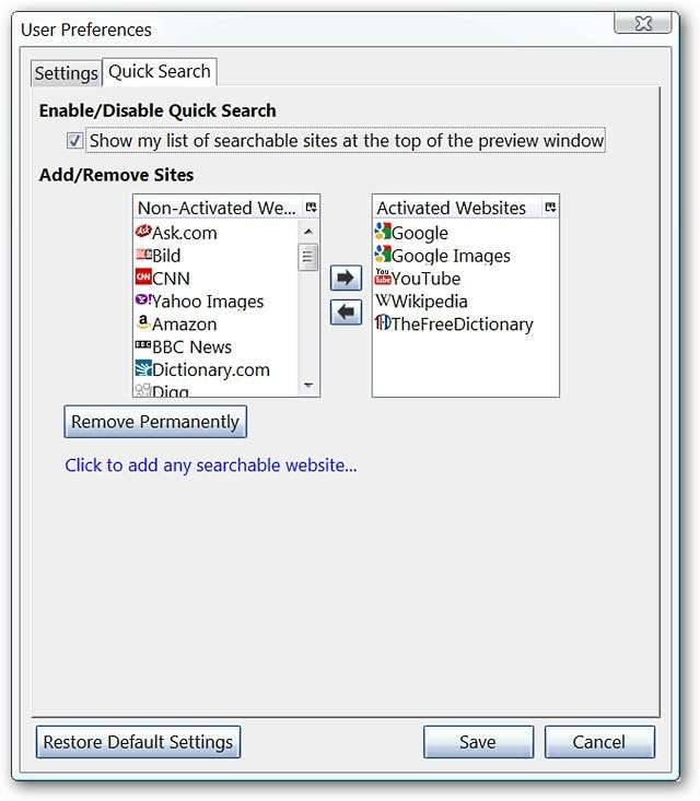 Κάντε οποιεσδήποτε τροποποιήσεις θέλετε για τη λειτουργία "Γρήγορη αναζήτηση".