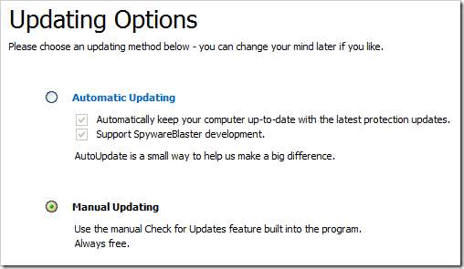 Στην επόμενη οθόνη θα σας ζητηθεί ενημερώσεις. Εάν θέλετε μια συνδρομή αυτόματης ενημέρωσης, θα σας επιστρέψει μόνο 9,95 $ / έτος, αλλά αυτό δεν απαιτείται για την πλήρη λειτουργία του προγράμματος, θα πρέπει απλώς να ελέγξετε χειροκίνητα για ενημερώσεις προστασίας.