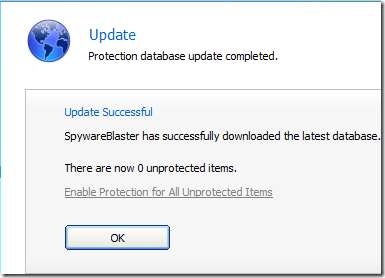Μετά SpywareBlaster έχει μια επιτυχημένη ενημέρωση της βάσης δεδομένων προστασίας της, θα λάβετε ένα μήνυμα επιβεβαίωσης.