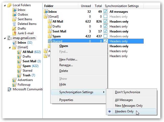 - Αλλάξτε όλους τους άλλους φακέλους σε "Μόνο κεφαλίδες". (Θα μπορούσατε να αφήσετε το Inbox ορισμένο σε Όλα αν θέλετε)