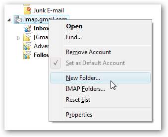 Οι ετικέτες Gmail παρουσιάζονται ως φάκελοι στην πλευρά της αλληλογραφίας των Windows. Μπορείτε εύκολα να δημιουργήσετε έναν νέο φάκελο κάνοντας δεξί κλικ στην καταχώριση imap.gmail.com και επιλέγοντας Νέος φάκελος.