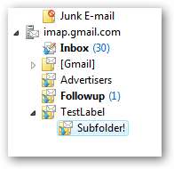 Μπορείτε ακόμη και να δημιουργήσετε υποφακέλους, οι οποίοι θα εμφανίζονται στο Gmail με το όνομα "TestLabel / Subfolder!" για αυτό το παράδειγμα:
