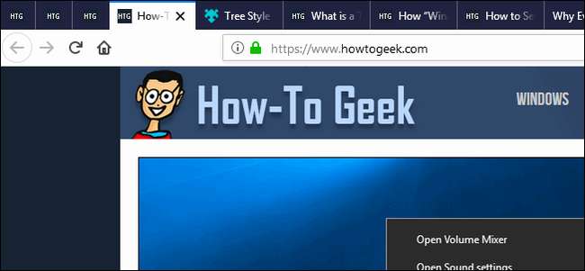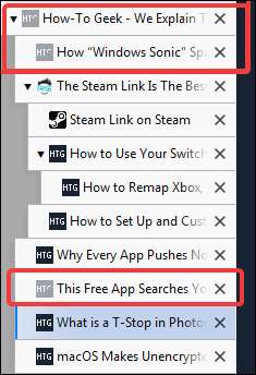 Στην παρακάτω εικόνα, η κύρια σελίδα How-To Geek είναι μια καρτέλα ανώτερου επιπέδου. Όλες οι καρτέλες με εσοχή κάτω από αυτήν είναι καρτέλες που ανοίξαμε από αυτήν την κύρια σελίδα.