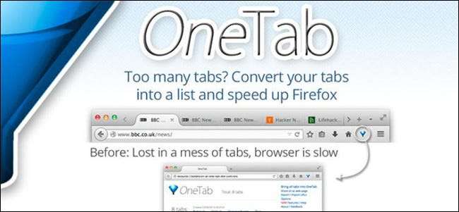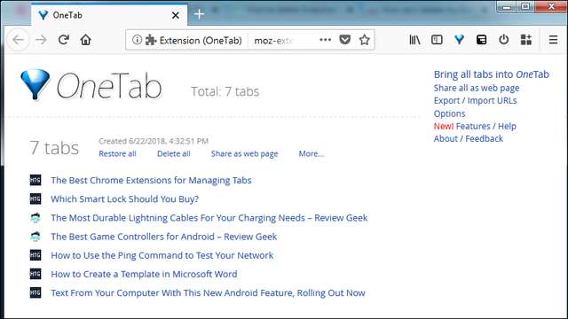 OneTab σάς επιτρέπει να αναστείλετε τις καρτέλες και να τις αποφύγετε, ώστε το πρόγραμμα περιήγησής σας να μην είναι τόσο γεμάτο. Δεν αναστέλλει αυτόματα τις καρτέλες όπως κάνει το Auto Tab Discarder. Πρέπει να κάνετε κλικ στο κουμπί επέκτασης στη γραμμή διευθύνσεών σας για να το πραγματοποιήσετε.
