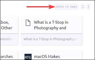 Μπορείτε να ανοίξετε οποιαδήποτε καρτέλα απλώς κάνοντας κλικ σε αυτήν. Και η σελίδα παραμένει αποθηκευμένη στη συλλογή σας έως ότου την καταργήσετε μη αυτόματα - μοιάζουν περισσότερο με σελιδοδείκτες από καρτέλες σε αναστολή με αυτόν τον τρόπο. Μπορείτε επίσης να ανοίξετε όλες τις σελίδες μιας συλλογής ταυτόχρονα κάνοντας κλικ στο κουμπί "Άνοιγμα καρτελών x". Αυτό είναι ιδανικό για να ανοίξετε ξανά μια περίοδο λειτουργίας που αποθηκεύσατε ή να ανοίξετε ξανά μια συλλογή σχετικών καρτελών.