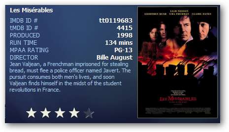 Εάν θέλετε μια πιο σε βάθος προσέγγιση για λήψη εξωφύλλου και λεπτομερών μεταδεδομένων στη συλλογή ταινιών σας μπορείτε να χρησιμοποιήσετε την εφαρμογή Media Center Master. Αυτό θα σας δώσει πιο λεπτομερείς πληροφορίες για τις ταινίες σας από το IMDB (Βάση δεδομένων ταινιών Διαδικτύου) που είναι πάντα ένα ωραίο πράγμα.