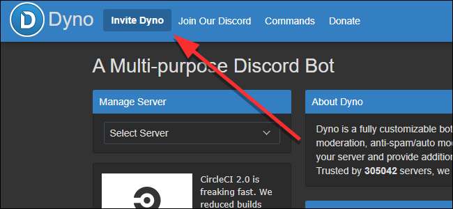Αρχικά, θα πρέπει να προσκαλέσετε το bot Dyno στον διακομιστή σας. Να κάνω αυτό, κατευθυνθείτε σε αυτόν τον σύνδεσμο και κάντε κλικ στην επιλογή Πρόσκληση Dyno στην επάνω αριστερή γωνία της οθόνης.