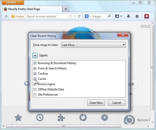 Μπορείτε επίσης να ζητήσετε από το πρόγραμμα περιήγησής σας να καταργήσει τα δεδομένα για ένα μικρό χρονικό διάστημα, όπως την τελευταία ώρα. Αυτό θα εξαλείψει τα ίχνη μιας ώρας περιήγησης χωρίς να διαγράψει ολόκληρη την προσωρινή μνήμη.