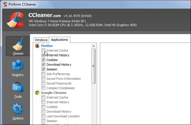 Πότε χρησιμοποιώντας ένα εργαλείο όπως το CCleaner , μπορείτε απλώς να αποεπιλέξετε την επιλογή Internet Cache του προγράμματος περιήγησής σας για να αποτρέψετε την εκκαθάριση της προσωρινής μνήμης του προγράμματος περιήγησής σας. Σημειώστε ότι κάθε πρόγραμμα περιήγησης έχει τα δικά του ξεχωριστά αρχεία προσωρινής μνήμης. Επομένως, εάν κάνετε περιήγηση με το Chrome, απλά πρέπει να βεβαιωθείτε ότι το CCleaner ή ένα παρόμοιο πρόγραμμα δεν εκκαθαρίζει την προσωρινή μνήμη του Chrome.