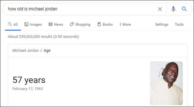 Ο βοηθός Google έχει μια μακρά λίστα χαρακτηριστικών και ικανοτήτων. Στο πιο βασικό επίπεδο, απαντά σε ερωτήσεις. Μπορείτε να ζητήσετε απλά πράγματα, όπως, "Ποια είναι η πρωτεύουσα του Μίτσιγκαν;" ή "Πόσο χρονών είναι ο Michael Jordan;" Όταν πραγματοποιείτε μια αναζήτηση Google στον υπολογιστή σας ή στο τηλέφωνό σας, θα δείτε συχνά ένα κουτί στην κορυφή των αποτελεσμάτων - αυτό είναι όπου ο βοηθός Google παίρνει τις απαντήσεις του.