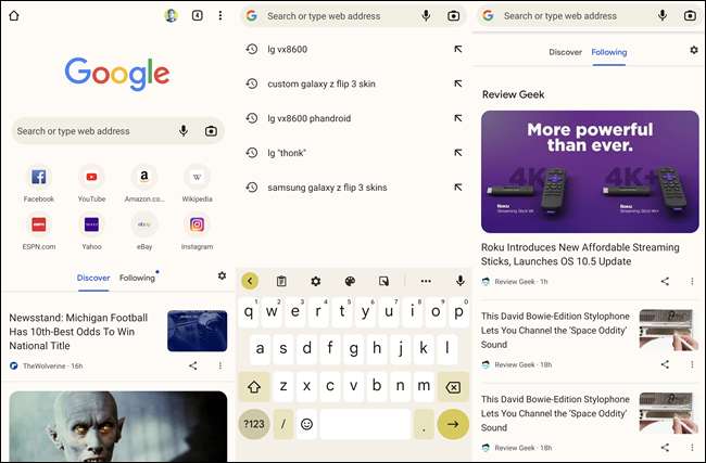 Chrome 93 άρχισε να φέρει σε κάποια από Android 12 του Υλικού Μπορείτε θέμα . Έκδοση 94 περιλαμβάνει ακόμη περισσότερο από τη νέα σχεδιαστική γλώσσα της Google. Τα χρώματα που ταιριάζουν με την ταπετσαρία σας μπορεί να βρεθεί στην αρχική σελίδα, τις τροφές αρχική σελίδα και στα αποτελέσματα αναζήτησης.