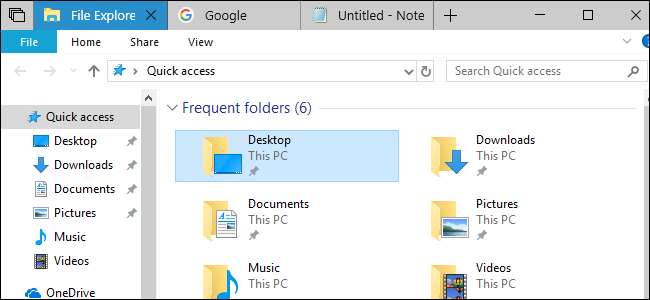 Αυτό σημαίνει ότι τα Windows τελικά είχαν Καρτέλες Εξερεύνηση αρχείων , αλλά οι Sets προσέφεραν πολύ περισσότερα από αυτό Για παράδειγμα, θα μπορούσατε να έχετε ένα παράθυρο που περιέχει ένα έγγραφο του Microsoft Word, μια ιστοσελίδα Microsoft Edge και μια καρτέλα Εξερεύνηση αρχείων. Θα μπορούσατε να μεταφέρετε και να αποθέσετε αυτές τις καρτέλες μεταξύ των παραθύρων και υπάρχουν συντομεύσεις πληκτρολογίου όπως Ctrl + Windows + Tab για εναλλαγή μεταξύ τους.