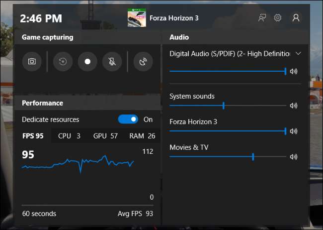 ο Παιχνίδι μπαρ , που επανασχεδιάστηκε στην ενημέρωση του Απριλίου 2018, έχει μερικές χρήσιμες νέες δυνατότητες. Περιλαμβάνει ενσωματωμένα χειριστήρια ήχου που σας επιτρέπουν να επιλέξετε την προεπιλεγμένη συσκευή εξόδου ήχου ή να ελέγχετε την ένταση άλλων εφαρμογών στο σύστημά σας.