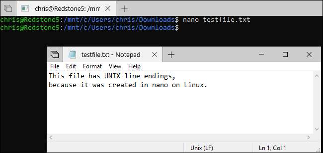 Μπορείτε ακόμη και να επεξεργαστείτε το αρχείο στο Σημειωματάριο και να το αποθηκεύσετε και το Σημειωματάριο θα χρησιμοποιήσει αυτόματα τις κατάλληλες καταλήξεις γραμμής που είχε αρχικά το αρχείο. Το Σημειωματάριο θα εξακολουθεί να δημιουργεί αρχεία με το τέλος της γραμμής των Windows (CRLF) από προεπιλογή. Η γραμμή κατάστασης δείχνει τον τύπο των καταληκτικών γραμμών που χρησιμοποιούνται για το τρέχον αρχείο εάν το ενεργοποιήσετε κάνοντας κλικ στην επιλογή Προβολή> Γραμμή κατάστασης.