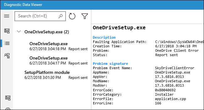 Η Microsoft παρουσίασε για πρώτη φορά το Διαγνωστικό πρόγραμμα προβολής δεδομένων στην ενημέρωση του Απριλίου 2018 των Windows 10. Πρέπει να εγκατασταθεί μέσω του Microsoft Store, αλλά δείχνει ακριβώς ποια δεδομένα διαγνωστικής και τηλεμετρίας αποστέλλουν τα Windows 10 στους διακομιστές της Microsoft.