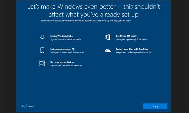 - Ρύθμιση μετά την ενημέρωση : Μετά την ενημέρωση, θα δείτε τώρα μια νέα οθόνη εγκατάστασης που παρέχει πληροφορίες σχετικά με νέες δυνατότητες στα Windows και επιλογές που μπορεί να θέλετε να διαμορφώσετε.