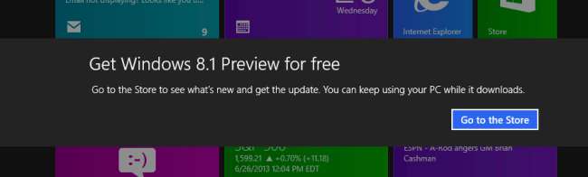 Υποθέτοντας ότι η αναβάθμιση στην τελική έκδοση θα είναι ακριβώς όπως η αναβάθμιση στην έκδοση προεπισκόπησης, πιθανότατα θα δείτε ένα αναδυόμενο παράθυρο "Λήψη των Windows 8.1" που θα σας μεταφέρει στο Windows Store και θα σας καθοδηγήσει στη διαδικασία λήψης.