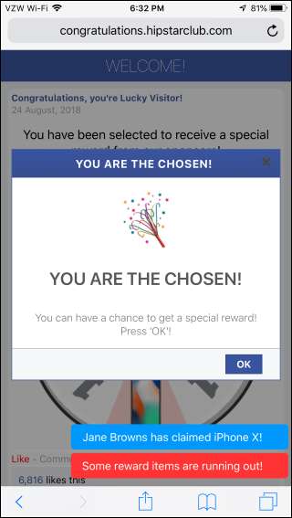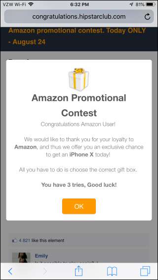 Πιθανότατα συνέβη στους περισσότερους ανθρώπους τώρα: Βλέπετε μια ιστοσελίδα στο τηλέφωνό σας και, ξαφνικά, βλέπετε ένα αναδυόμενο παράθυρο που λέει ότι έχετε κερδίσει μια δωροκάρτα 1000 $ Amazon ή παρόμοιο ψεύτικο έπαθλο. Τι συμβαίνει?
