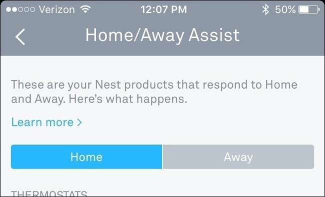 Στον θερμοστάτη Nest, ονομάζονται αυτές οι λειτουργίες Auto-Away και Home / Away Assist , αντίστοιχα. Ο πρώτος χρησιμοποιεί μόνο τον αισθητήρα κίνησης του Nest Thermostat για να προσδιορίσει εάν κάποιος είναι σπίτι ή όχι, ενώ το Home / Away Assist χρησιμοποιεί έναν συνδυασμό του αισθητήρα κίνησης και του GPS του τηλεφώνου σας. Εάν έχετε ενεργοποιήσει μόνο το Auto-Away, το Nest χρησιμοποιεί μόνο τον αισθητήρα κίνησης για να προσδιορίσει εάν είστε σπίτι ή όχι και αυτό μπορεί να προκαλέσει ορισμένα προβλήματα εάν το Nest πιστεύει ότι δεν είστε σπίτι όταν είστε πραγματικά.