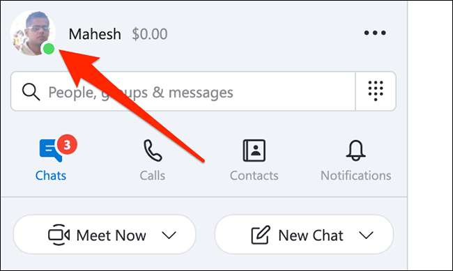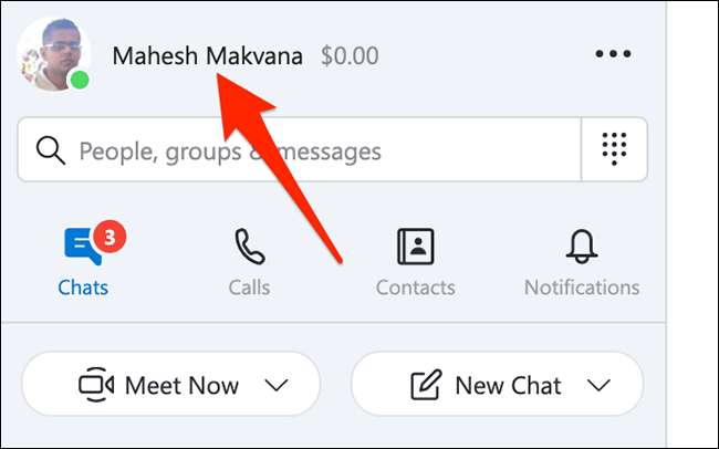 En la aplicación Skype, en la esquina superior izquierda, haga clic en el icono de su perfil.