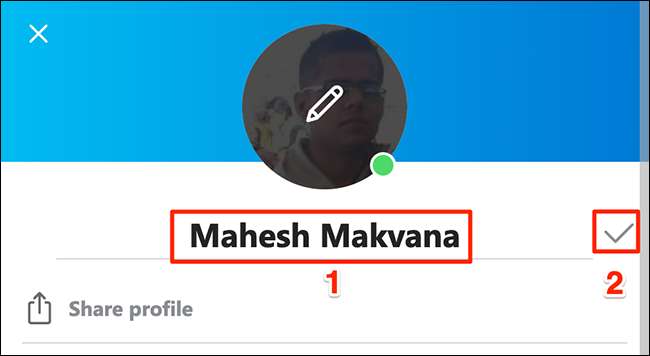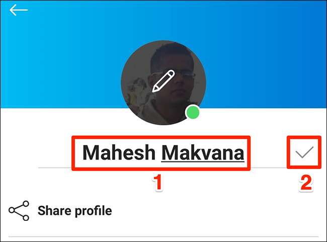 Toque su nombre de visualización actual y escriba el nuevo. Luego, toque el icono de Marca de verificación junto al campo Nombre.