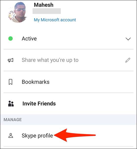 Desde el menú que se abre, seleccione "Perfil de Skype".