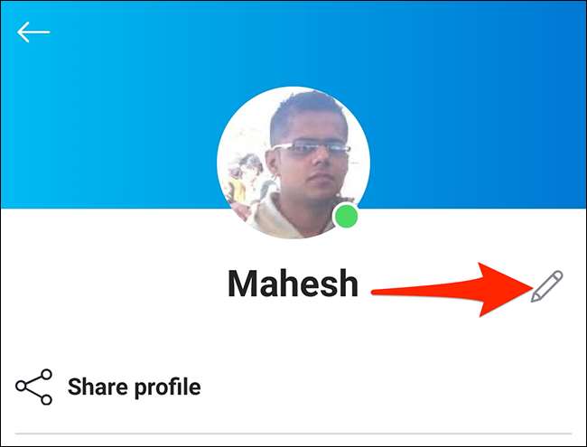 En la pantalla de su perfil, toque el icono Lápiz junto a su nombre de pantalla.