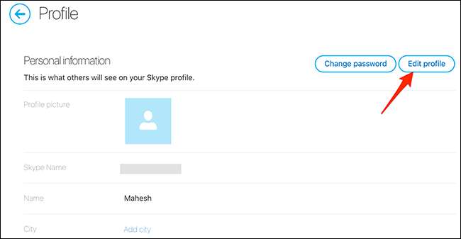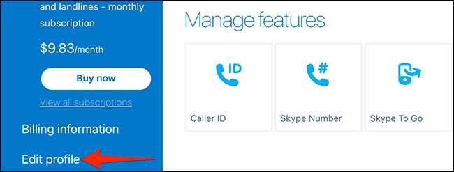 La página "Mi cuenta" de Skype se abrirá. Aquí, desde la barra lateral a la izquierda, seleccione "Editar perfil".