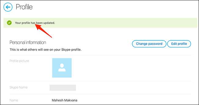 Skype ahora usará su nombre de pantalla recién especificado.