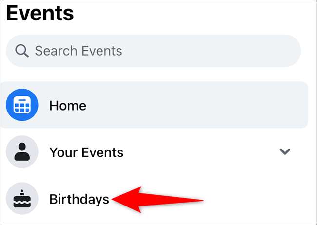 En la página "Eventos" que se abre, desde la barra lateral a la izquierda, seleccione "Cumpleaños".