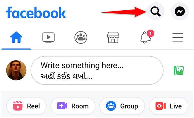Para hacerlo, primero, abra la aplicación de Facebook en su teléfono. En la aplicación, en la esquina superior derecha, toque la opción "Buscar" (un icono de lupa).
