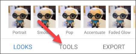Con la imagen abierta en el editor, cambie a la pestaña “Herramientas” en la barra inferior.