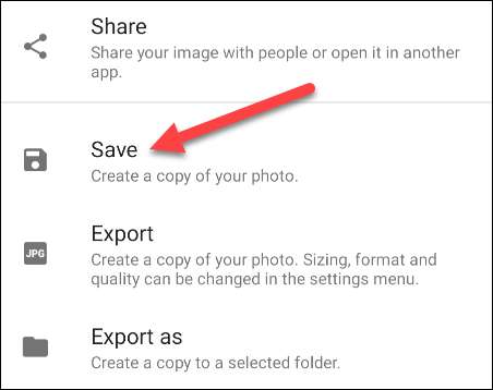 Para guardar la imagen volteada, seleccione “Exportar” en la barra inferior.